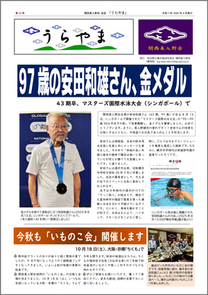 ニュース 地域・職域美入野会からのお知らせ 関西美入野会、会報「うらやま」第12号を発行 投稿日: 2025年9月30日 関西美入野会会報「うらやま」第12号が発行されました。紙面トップを飾るのは「97歳安田和雄さん、金メダル」の大きな文字。シンガポールで開催されたマスターズ国際水泳大会で金メダルを獲得された43期の安田和雄さん(97歳)の快挙を詳報しています。また10月18日(土)開催予定の「いものこ会」の開催も伝えています。 クリックでPDFがご覧いただけます 関連投稿 弘前大学学長に福田氏(71期卒)就任 おめでとう!全国優勝&準優勝 美入野会から御祝いを贈呈 平成30年度県庁美入野会総会・懇親会開催される 過去の投稿 新会長就任の挨拶